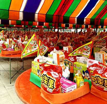中元普渡敬普渡公(普渡供品有代訂拜拜完可帶回),下午一點開始至三點收,參加者有讀丁數。